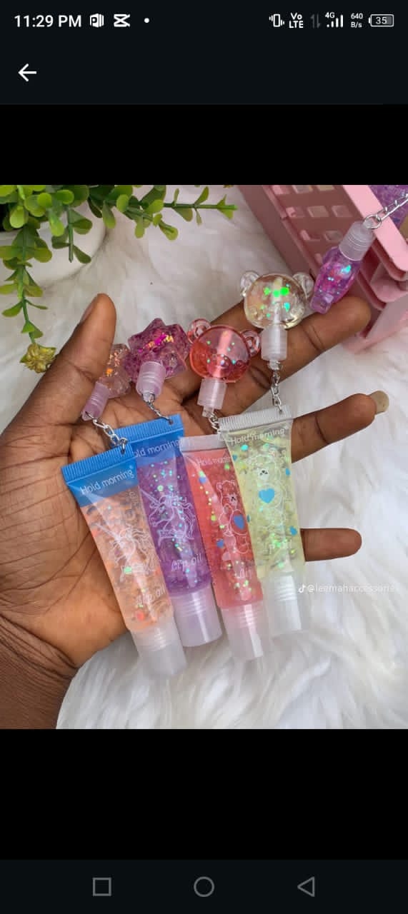 Buy cute glittery lip gloss tubes with charms/keychains online at Annie's Allure Luxe | Huxxle